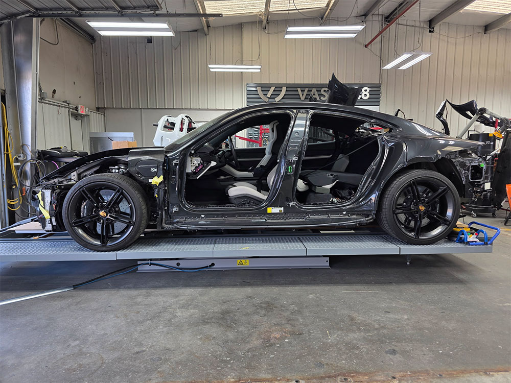 Each time a new Jaguar model comes out, the repair process changes. This means that not only does each technician have to be certified for that particular model, but that the new tools that are required for the repair have to be purchased. As you can judge by the photo, Barrow Body Shop is equipped to handle new and used Jaguar Collision repair.
